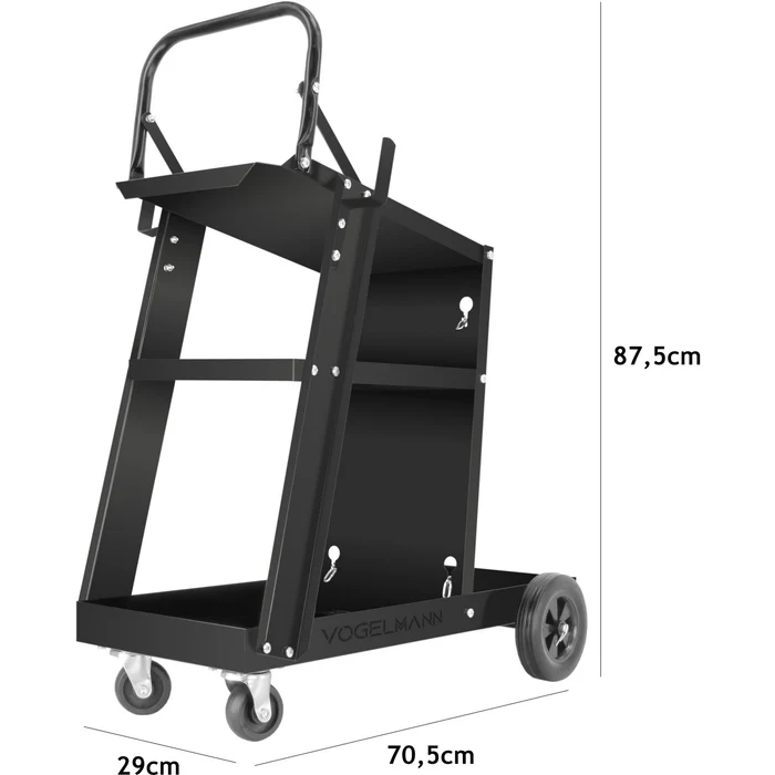 Vogelmannin hitsauskärry on kevyt alusta, suunniteltu TIG-, MIG- tai plasmakaasuhitsauslaitteiden kuljettamiseen sekä yleiseen työpajakäyttöön.