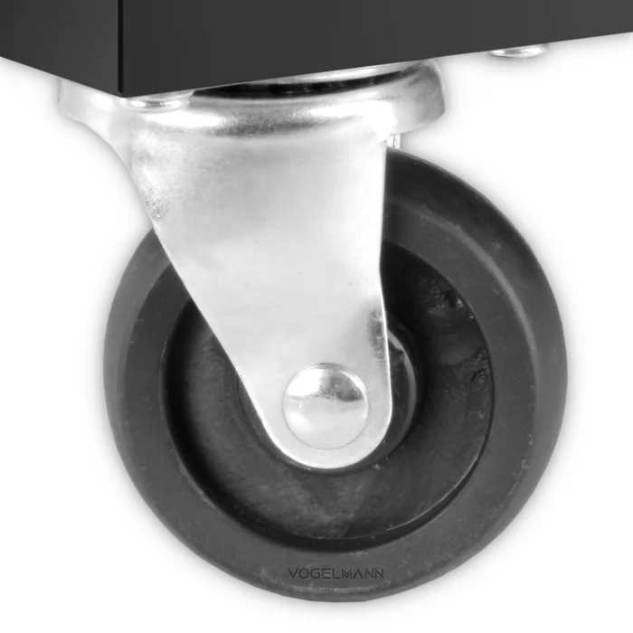 Kaksi suurta takapyörää (Ø 15 cm) ja kaksi etuosan kääntyvää pyörää (Ø 7 cm) helpottavat liikuteltavuutta työskentelyn aikana.