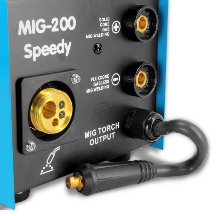 La soudeuse semi-automatique MIG 200 Speedy est utilisée pour le soudage manuel de l'acier et des métaux non ferreux.